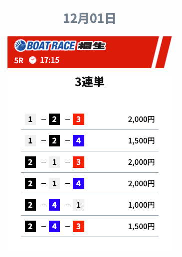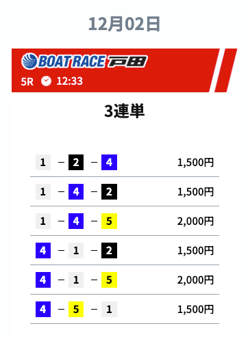 せっかくだからスマッシュ?という5万のプラン参加したけど、1レース目に1番人気でオッズ6,9倍。おい普通にプラン料金回収できねえだろと思ってたら、2レース目で万舟ぶち当てて流石に発狂。あざました。 -