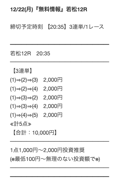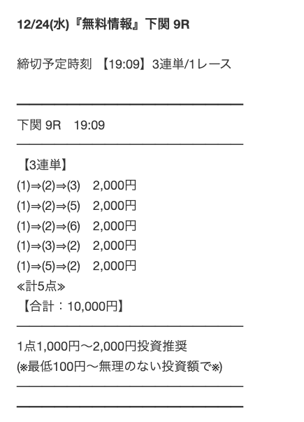 ’24/12/12 的中無料予想で23,000円獲得