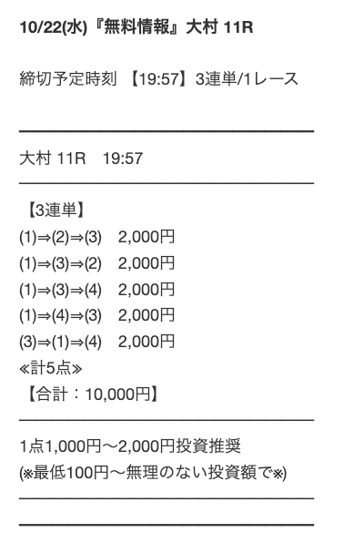 ’24/10/11 的中無料予想で21,600円獲得