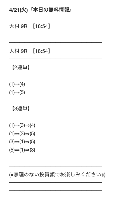 ’26/04/21 的中無料予想で4,400円獲得