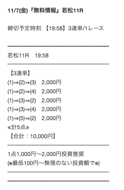 ★★★☆☆ 3.02018/03/07無料はこの3日間で4レース中2レース的中しました