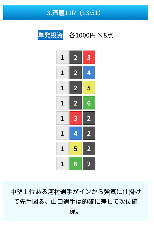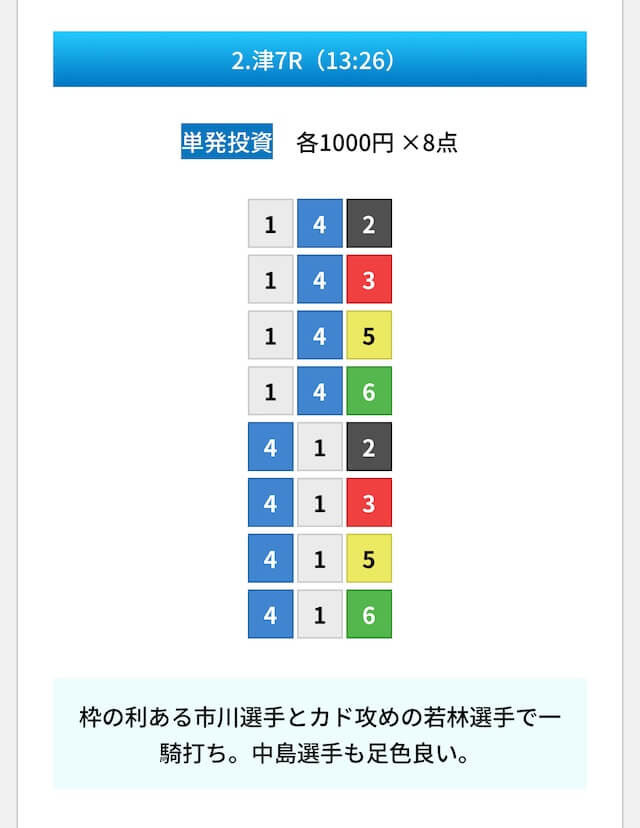 無料予想を1日に4レースも公開してるのまじでありがたい!!1週間で28レースよ??仮に平均配当1万円ぐらいだとしたら1週間で28万円・・・ガッポガポよ。